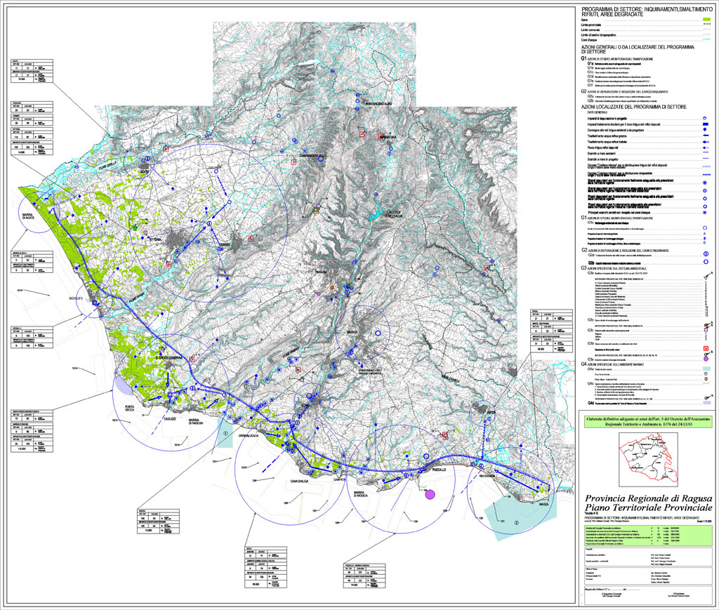 Tavola 4 G Programma di settore: inquinamenti, smaltimento rifiuti, aree degradate. Scala 1:150.000 (riduzione dalla scala originale 1:75.000)